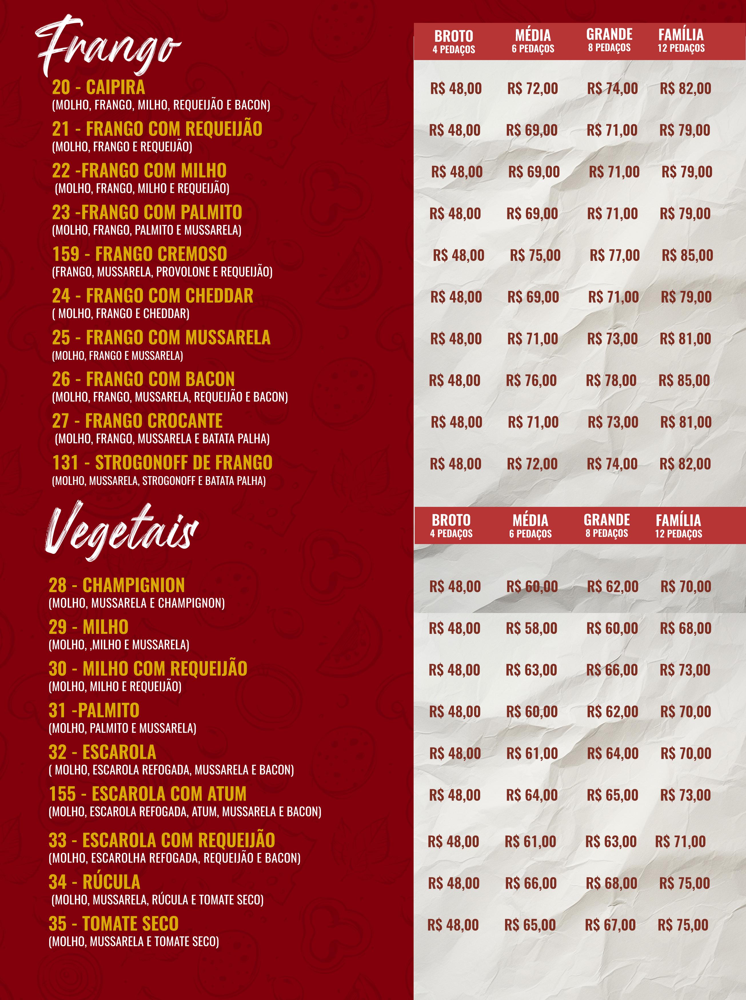 Contando com um extenso cardápio com mais de 90 sabores entre pizzas salgadas e doces, a principal característica do produto é a massa fina e crocante. A pizza é feita na hora com os melhores