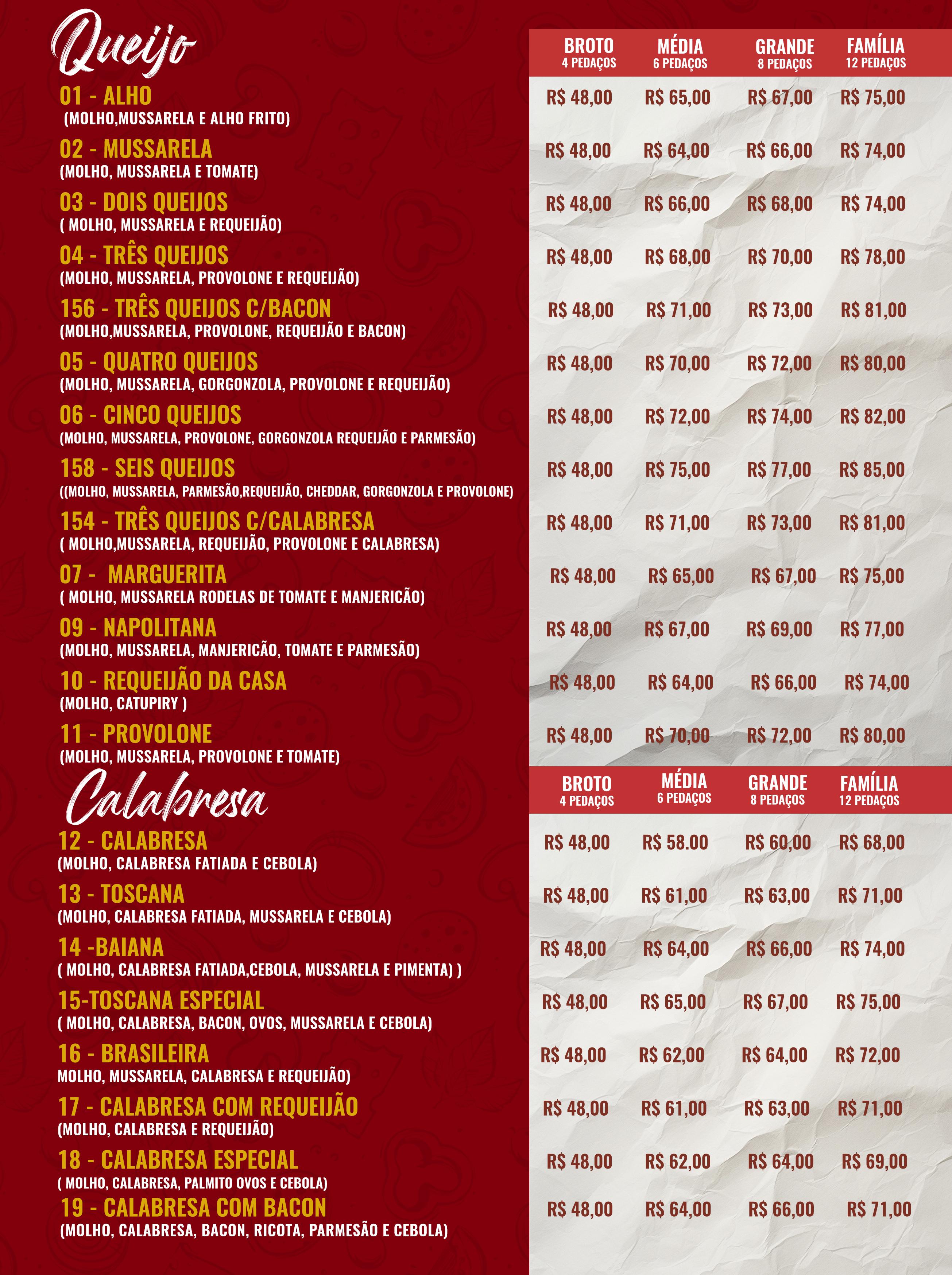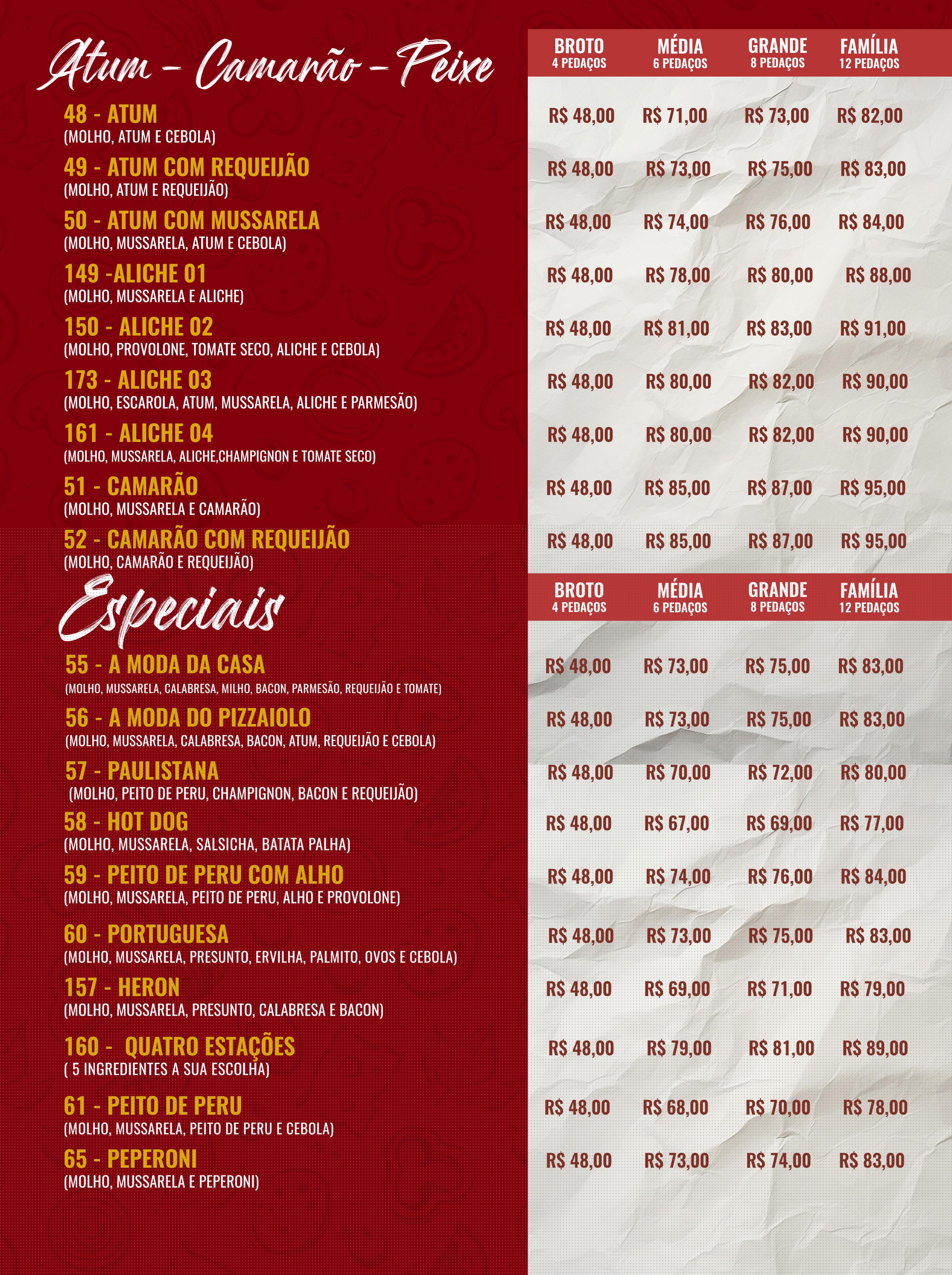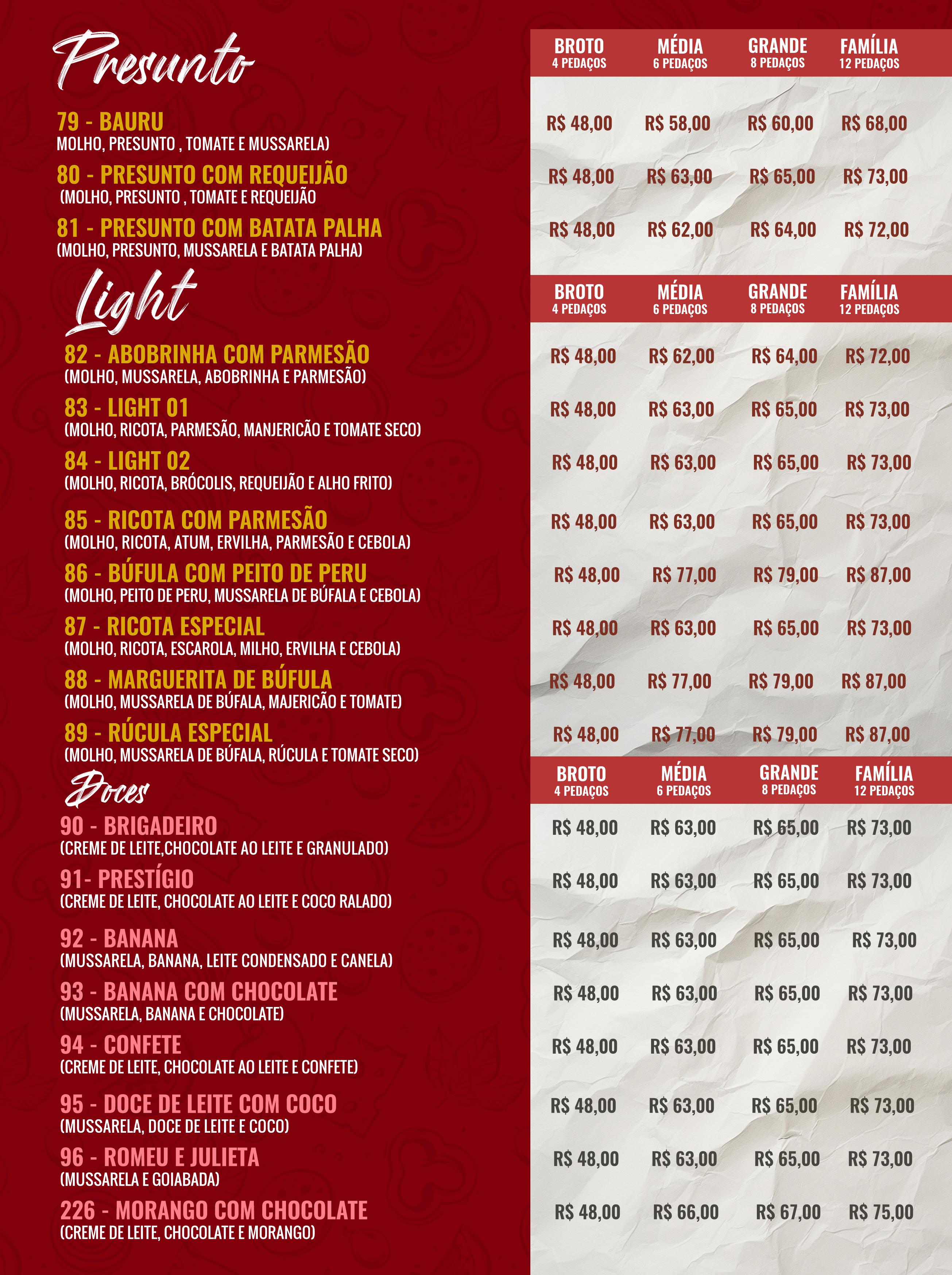 Contando com um extenso cardápio com mais de 90 sabores entre pizzas salgadas e doces, a principal característica do produto é a massa fina e crocante. A pizza é feita na hora com os melhores